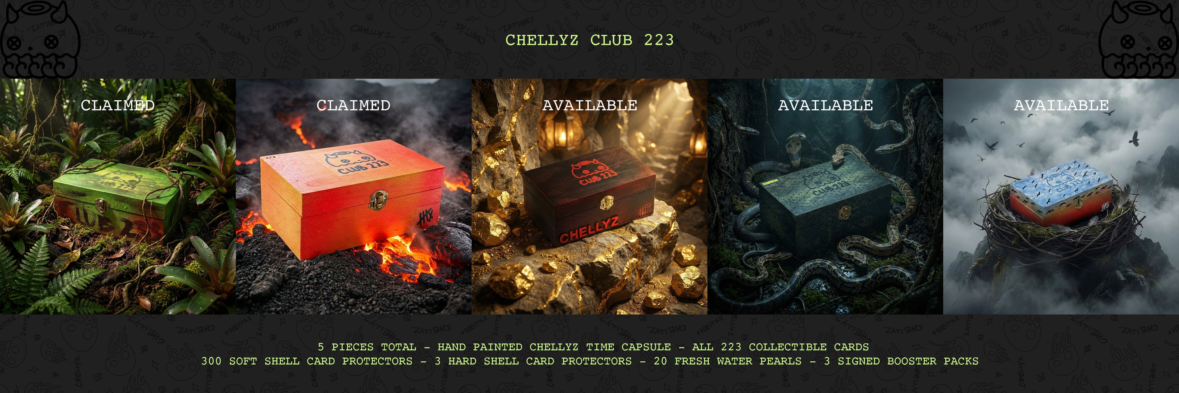 Features a raised Chellyz logo embroidered on the front with a huge hand drawn mural on the back.